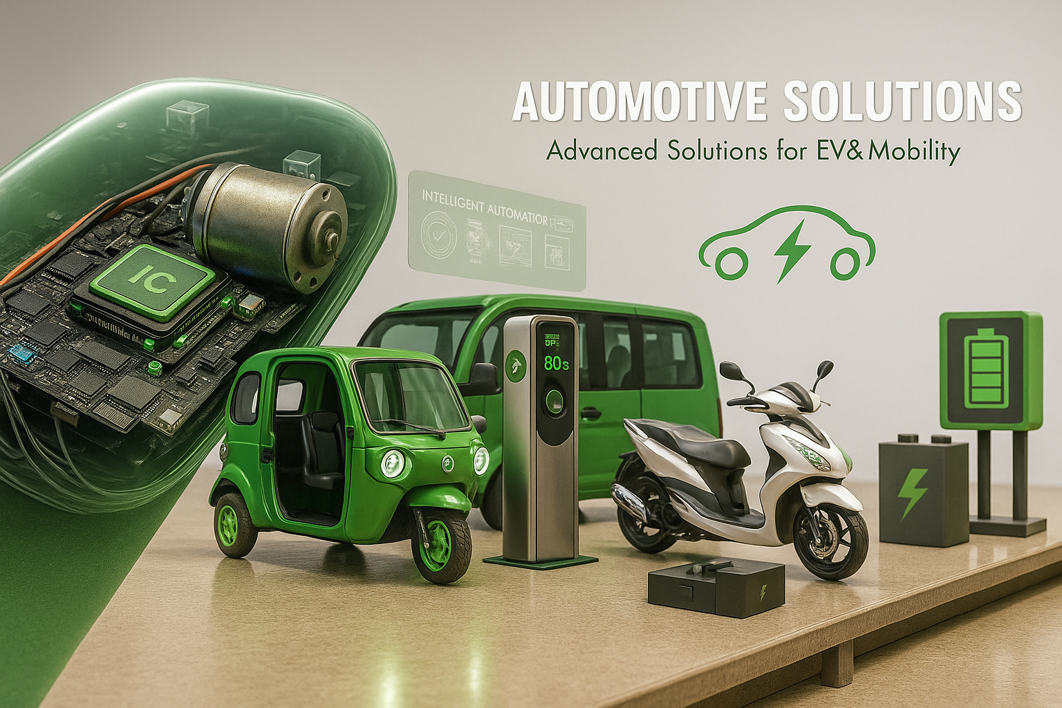 We design and develop advanced automotive and e-mobility solutions, including high-performance EV motor controllers, Battery Management Systems (BMS), automotive-grade power electronics, and intelligent vehicle automation systems.